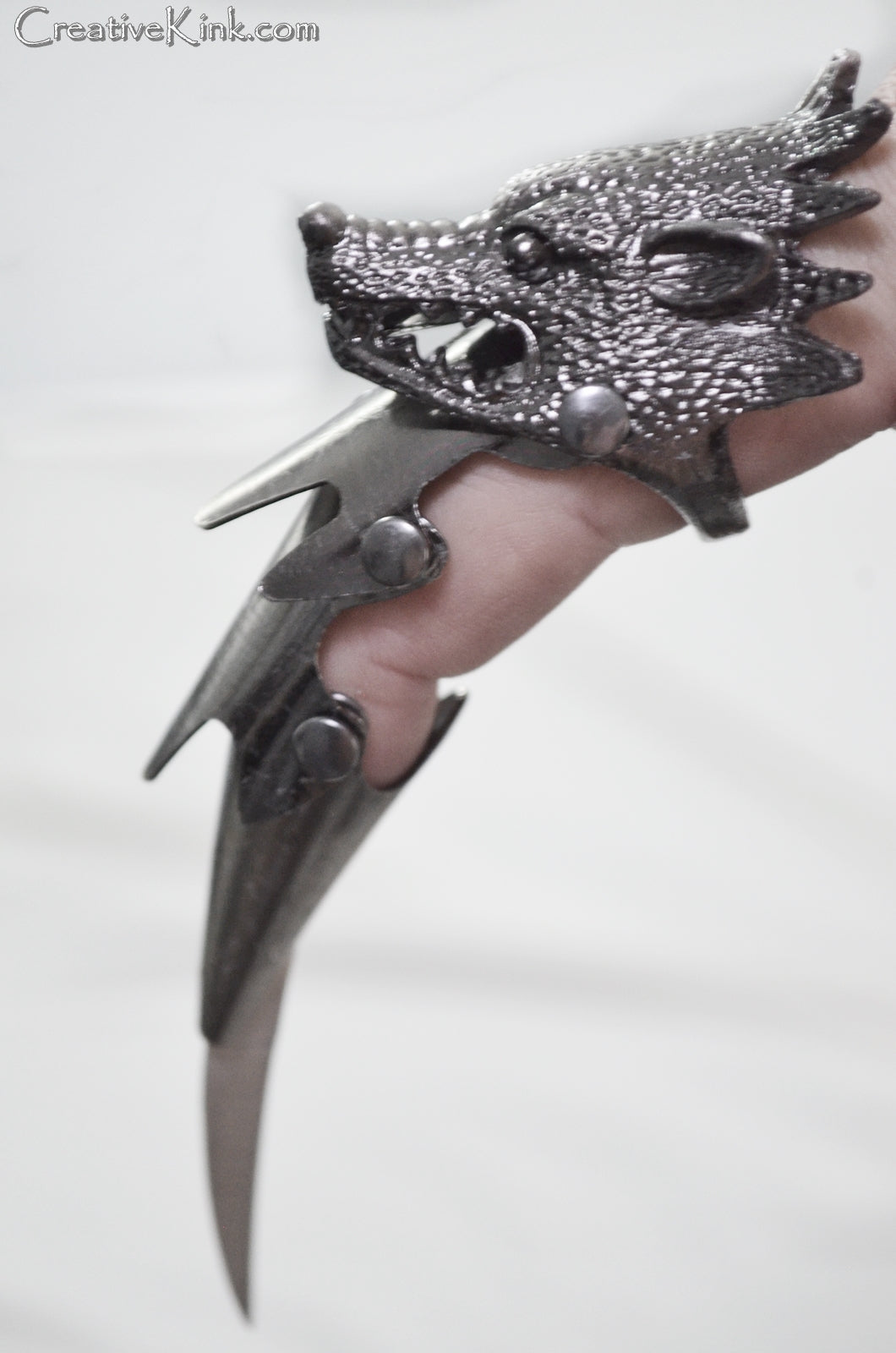 Finger Armor - Finger Knives - Wolf Skull Finger Armor and Finger tip Blade - BDSM Knife Play Toy